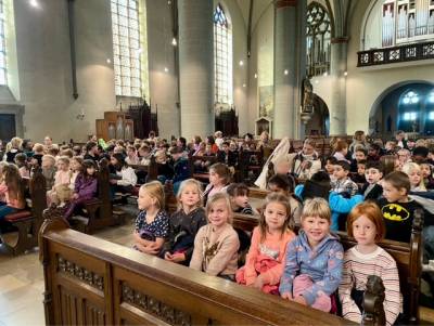 Am Dienstag verwandelte sich die Laurentiuskirche in einen besonderen Konzertsaal für alle Overberger Kinder. Der Kirchenmusiker Herr Schmitt-Prinz lud zu einem Kinderorgelkonzert mit der Aufführrung des bekannten Musikstücks "Der Karneval der Tiere" von Camille Saint-Saëns ein.