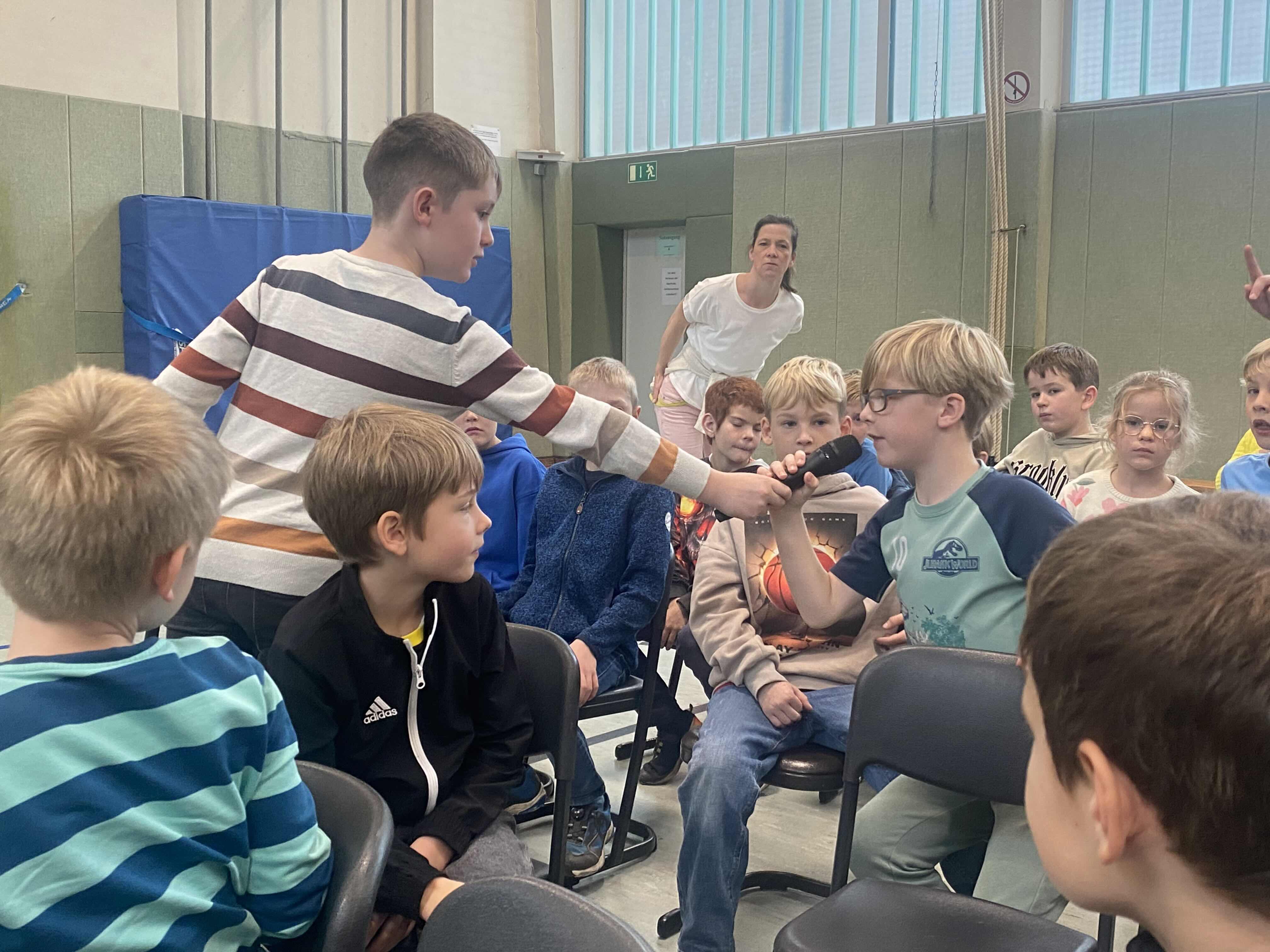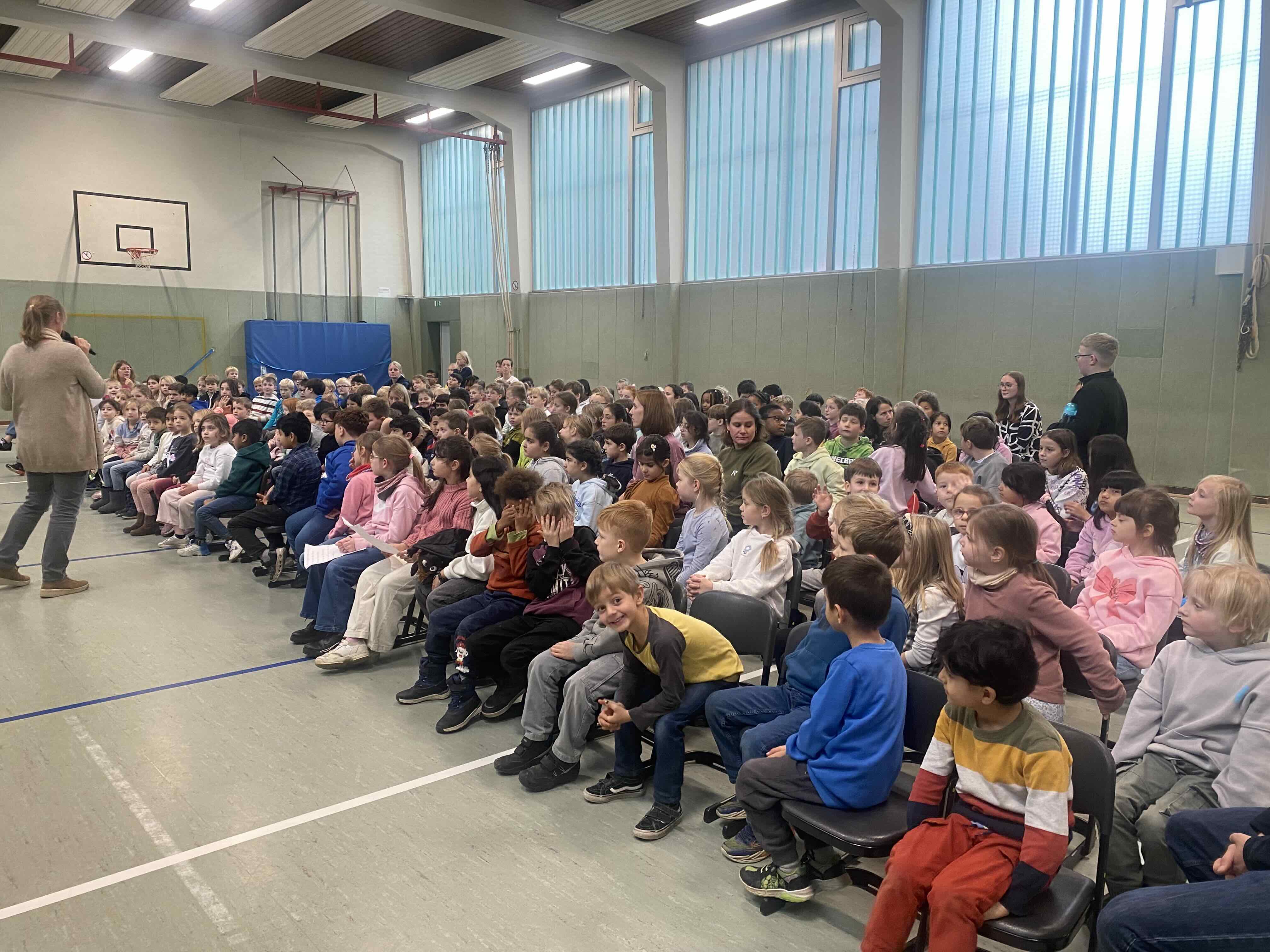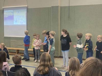 Die Projektwoche endete mit einer gemeinsamen Abschlussveranstaltung in der Turnhalle, bei der jeder Jahrgang seine Ergebnisse präsentierte. Kinder und Lehrkräfte waren gleichermaßen begeistert von dem Engagement und den Ideen, die in dieser Woche entstanden sind.