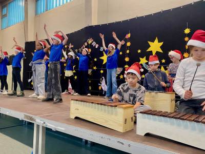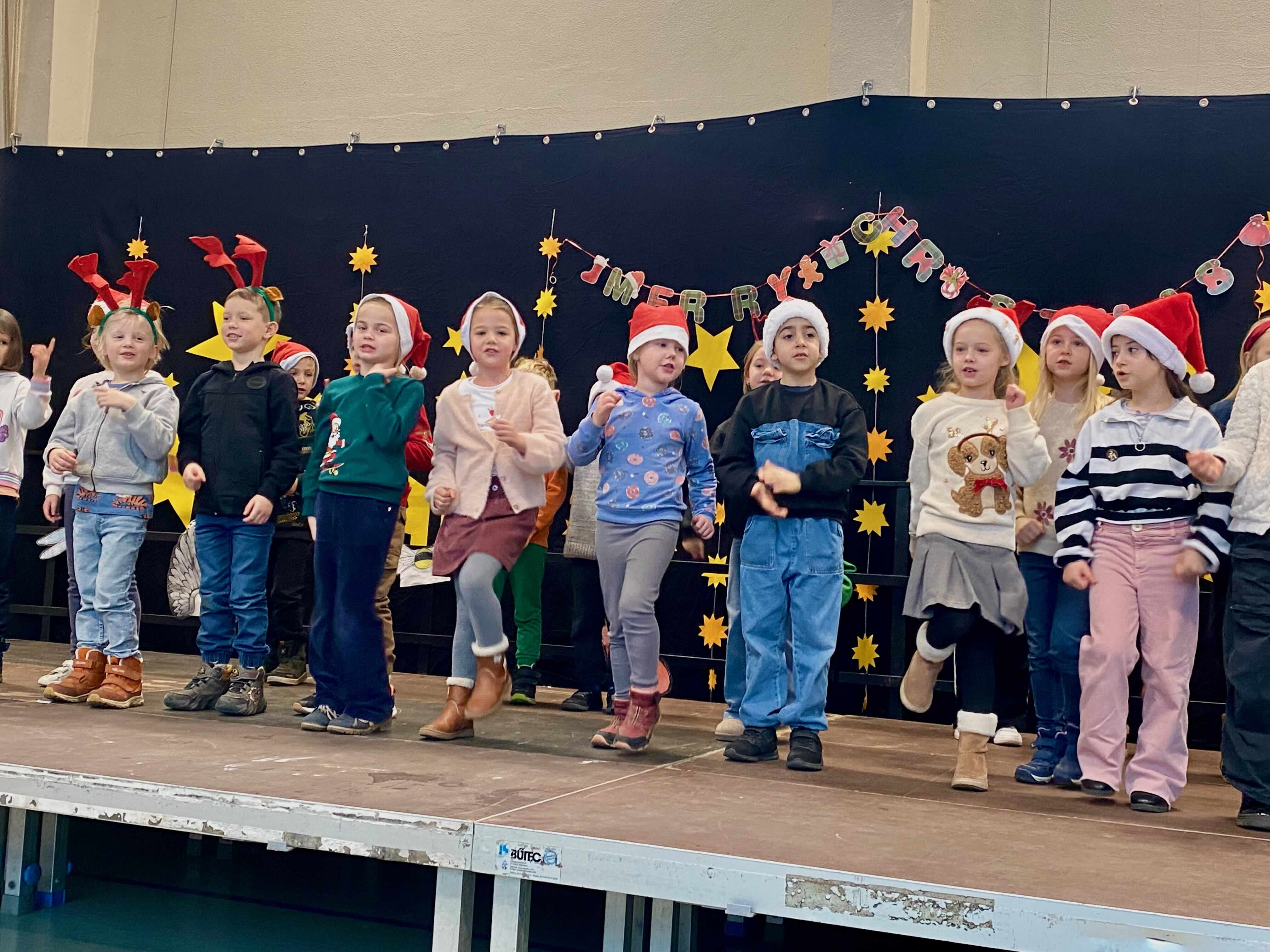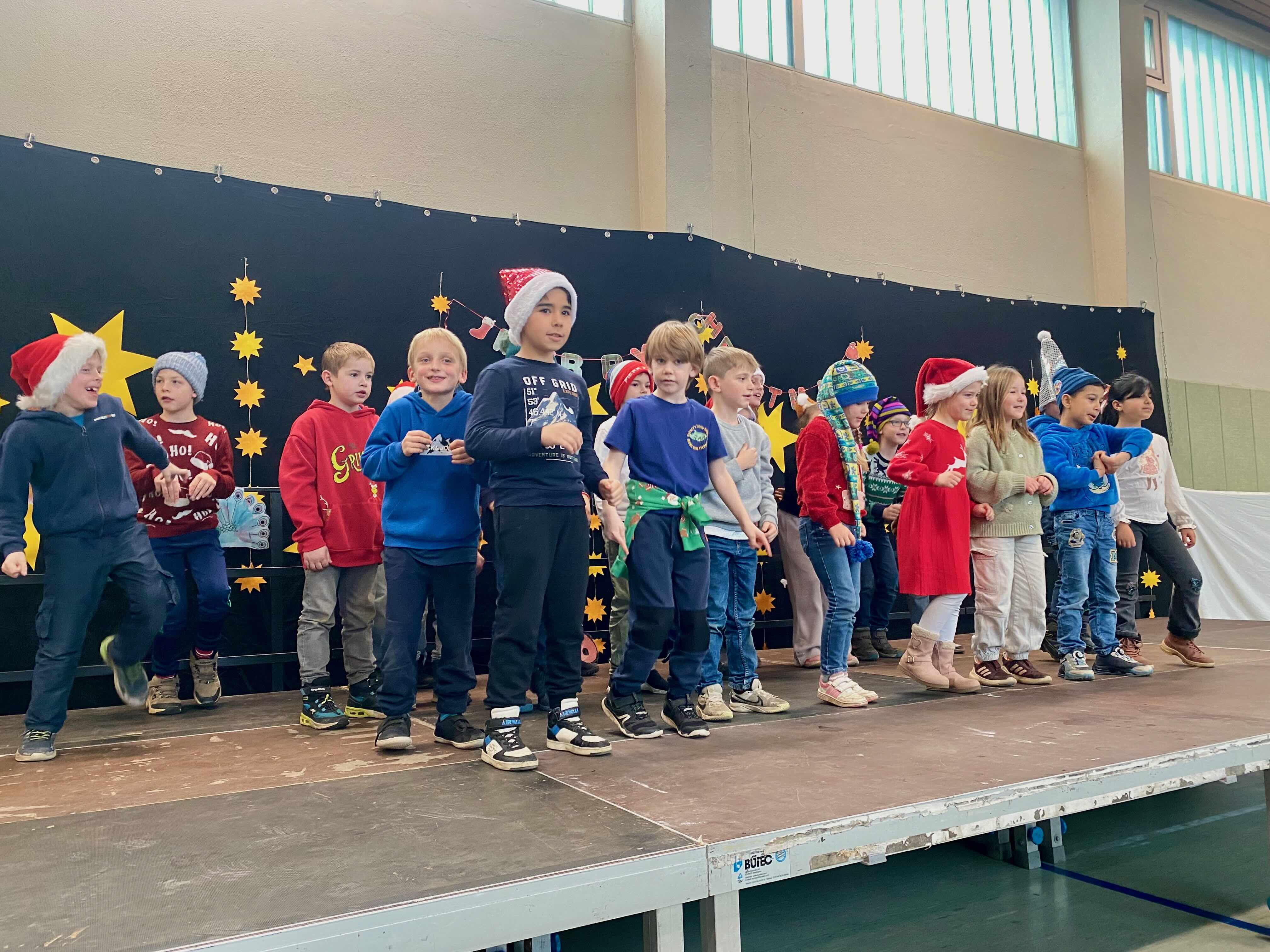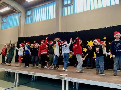 In festlicher Atmosphäre fand unsere diesjährige Weihnachtsfeier in unserer Turnhalle statt. Vor großem Publikum aus allen SchülerInnen, LehrerInnen, Eltern und Großeltern präsentierten die Kinder ein abwechslungsreiches Programm. Jedes Kind hatte mindestens einen Auftritt und durfte zeigen, was es in den letzten Wochen mit viel Engagement vorbereitet hatte.