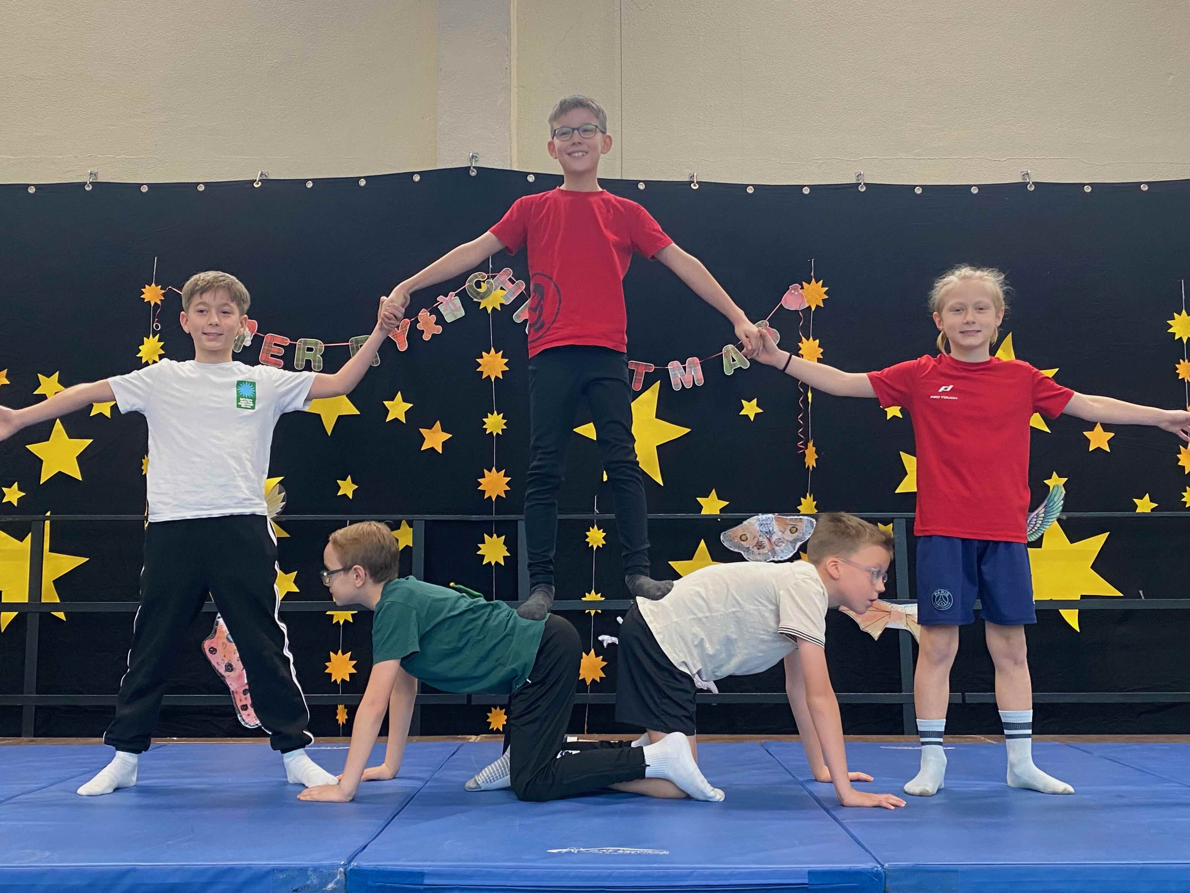 Musikalische Beiträge, Tänze und akrobatische Darstellungen wechselten sich ab und machten die Feier lebendig. Durch das Programm führte charmant ein Weihnachtswichtel, der auf der Suche nach den richtigen Flügeln war, um rechtzeitig mit dem Rentierschlitten zum Nordpol zu fahren. Seine humorvollen Moderationen verbanden die einzelnen Programmpunkte und sorgten immer wieder für ein fröhliches Lachen. Mithilfe der Kinder gelang es ihm, schließlich die richtigen Flügel zu finden.